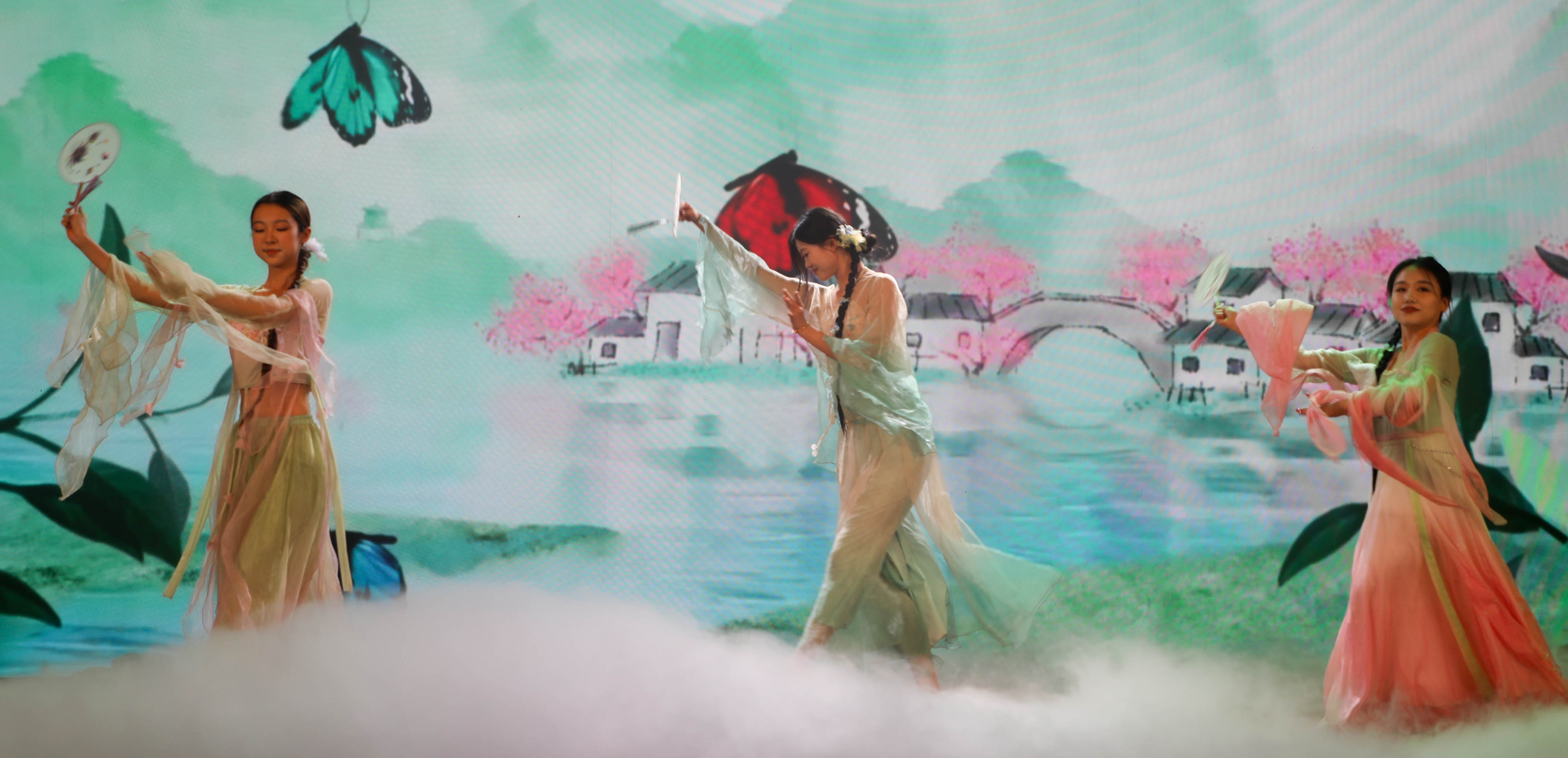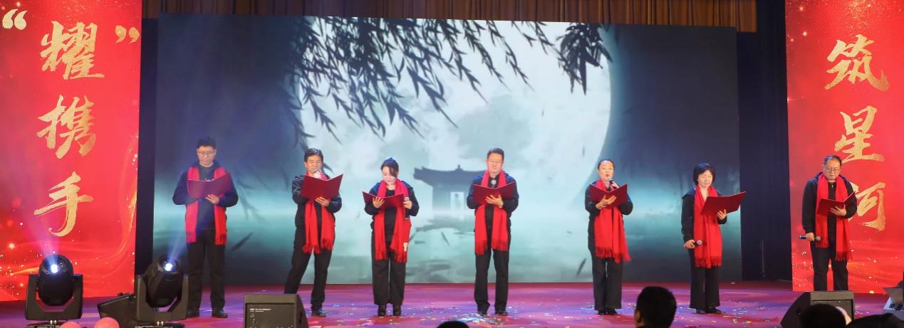 多元融合,艺彩纷呈。日语系师生演绎的戏曲节目《新贵妃醉酒》,展现了传统艺术在当代校园文化中的创新传承;中文系教师带来《美育三句半+踏雪寻梅》诗乐表演,以悠扬的吟唱和典雅的舞台呈现,诠释了育人与冬雪交融的意境之美,体现了人文学科深厚的文化积淀。